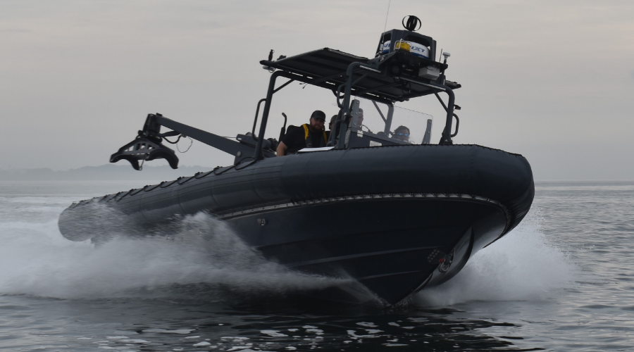 In collaboration with the United States Navy, RIBCRAFT builds the US Navy 11 Meter RIB. Featuring twin Cummins diesel engines with Hamilton jets, the RIBCRAFT USN 11 Meter RIB accommodates up to 26 passengers/crew. With configurations for open forward and aft decks, the 11 Meter RIB is ideal for patrol, shipboard operations, search and rescue (SAR), maritime interdiction, force protection, VBSS, and explosive ordinance and counter mine measures. Built to exacting military standards, the 38' RIBCRAFT 11 Meter RIB features an internal composite structure, multiple configurations, self draining deck, and mechanically fastened polyurethane tube. This is the standard US Navy 11 Meter RIB and US Navy 11 Meter Expeditionary RIB.